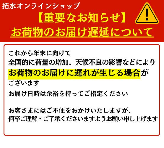 ◆交通事情・天候状況・その他事情により、ご希望の時間帯にお届けできない場合もございます。